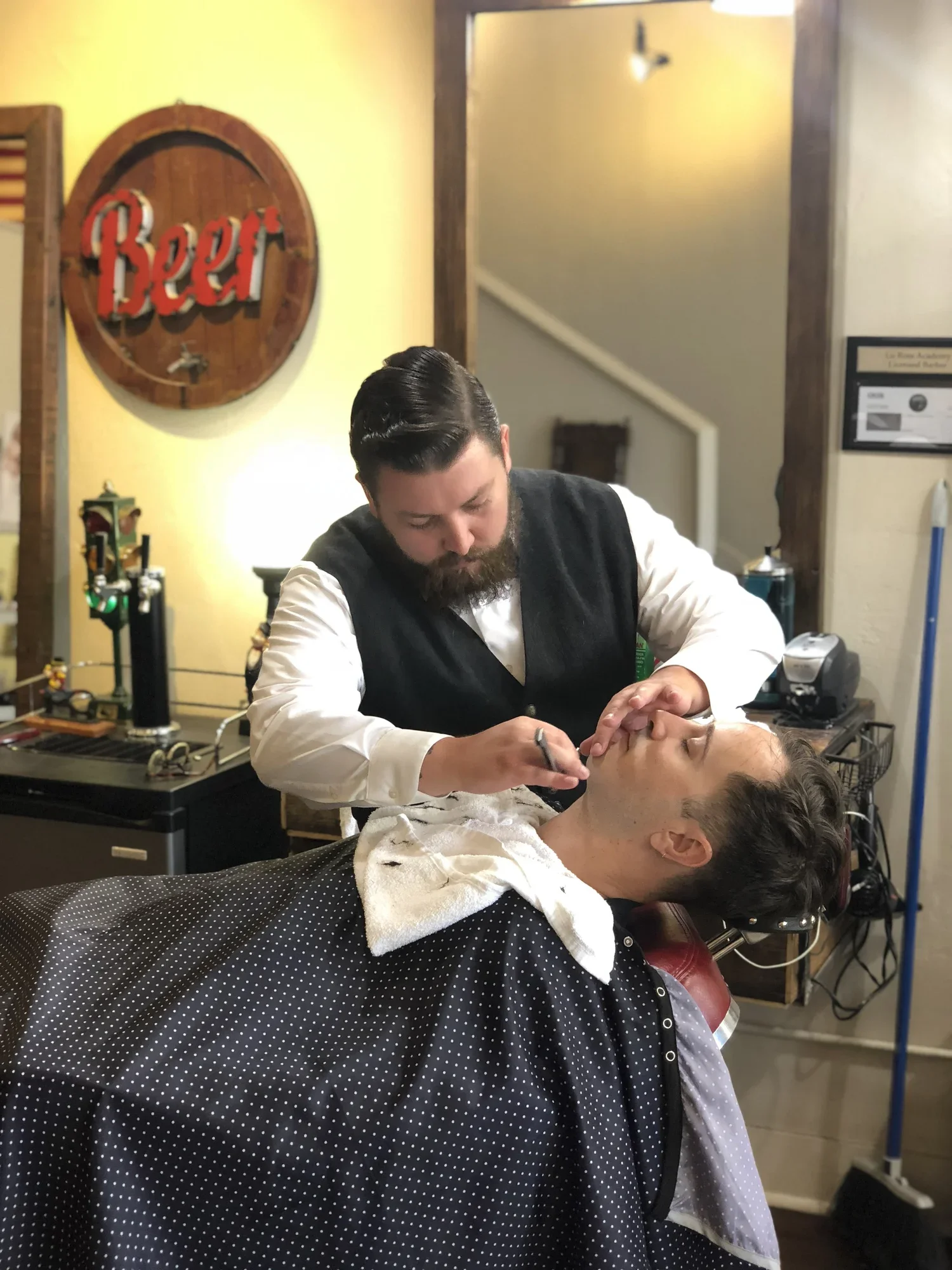 A close shave starting with a hot towel to prepare the skin for a straight razor.